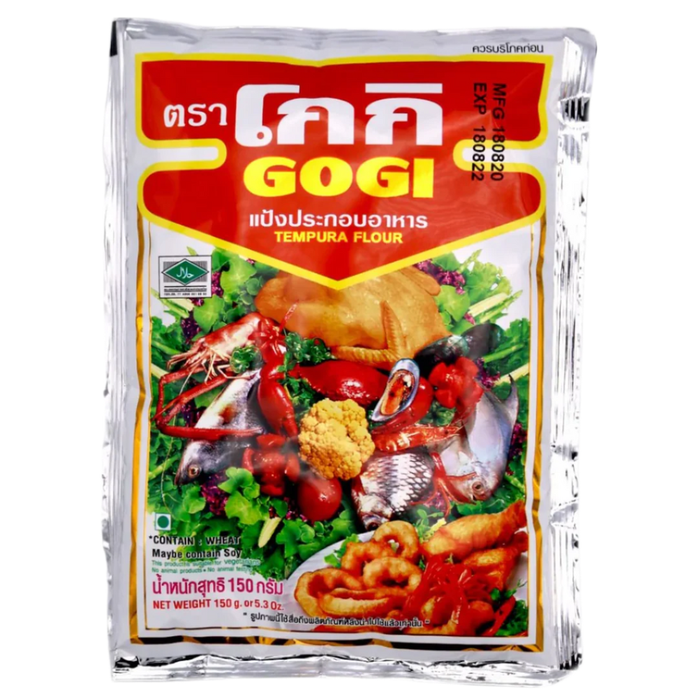 GOGI Tempura Flour, a 150 g pouch of easy-to-use, halal-certified Thai batter mix perfect for creating authentic tempura-style dishes. Blended from wheat flour, tapioca starch, and baking powder, this self-raising mix ensures a light, airy, golden crust that stays crisp without absorbing excess oil. Ideal for frying vegetables, seafood, chicken, or even fruit, it delivers restaurant-quality results in minutes. Simply blend with cold water, dip, and fry for consistently crispy creations that showcase Asian culinary tradition. Packaged in Thailand, it’s a pantry staple for experimenting with Japanese, Thai, or fusion recipes at home.