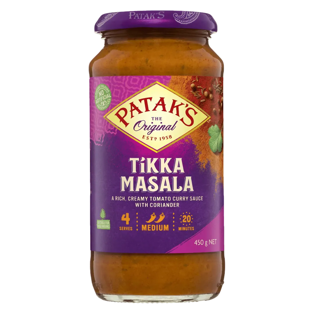 Bring restaurant-style Indian cuisine into your kitchen with Patak’s Tikka Masala Curry Paste. This 450 g jar features a complex blend of 12 authentic spices—including turmeric, paprika, cumin, coriander, garlic, ginger, and tamarind—for a rich, aromatic base that delivers medium heat and full-flavored depth. Ready to use straight from the jar, it simplifies dinner prep: just add to your choice of protein or vegetables and simmer into a creamy, smoky tikka masala. Gluten-free, vegetarian-friendly, and crafted by a trusted UK brand since 1957, it ensures consistent, high-quality results every time.