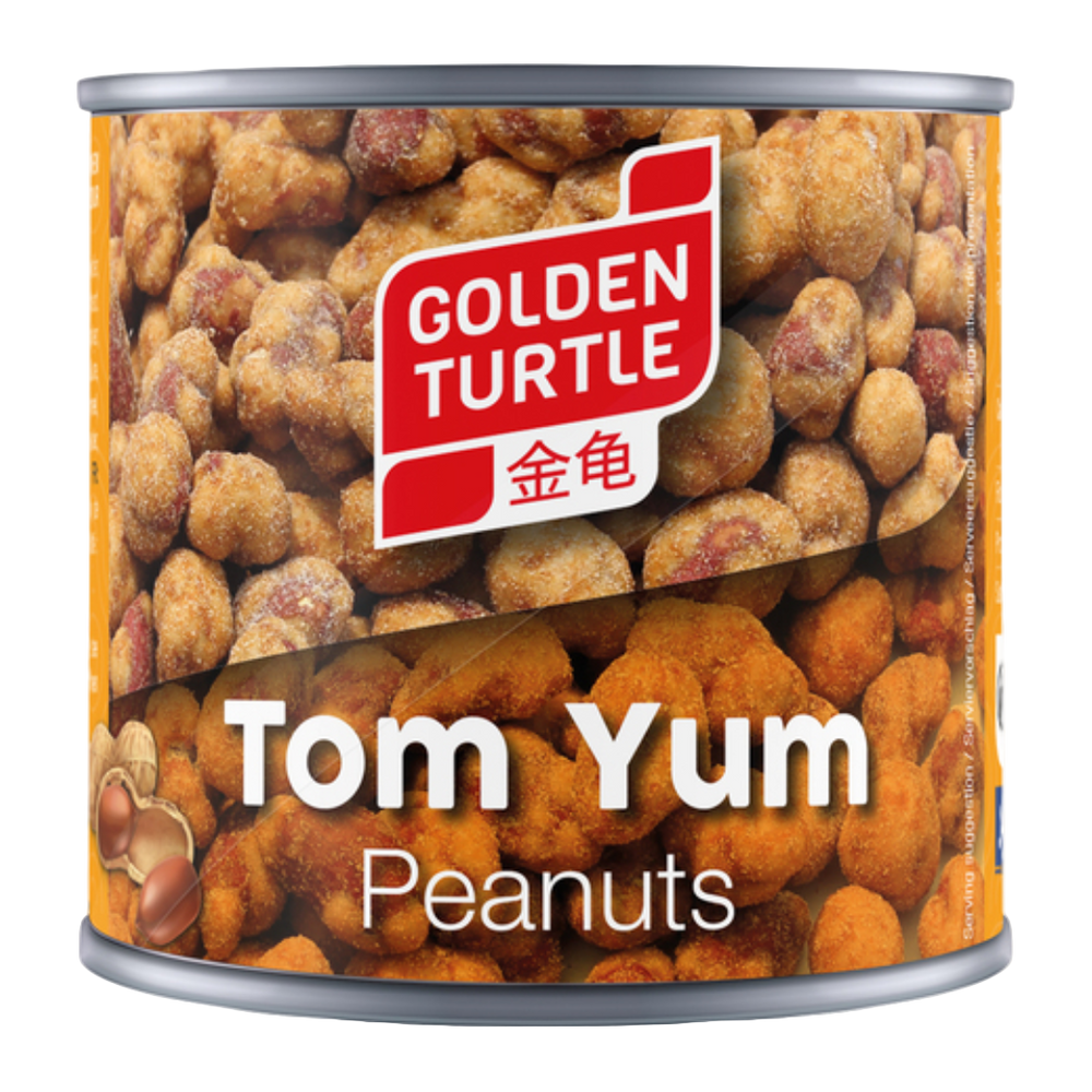 Golden Turtle Tom Yum Peanuts are a sensational, Asian-inspired treat perfect for adventurous snackers. Each high-quality peanut is enveloped in a crispy coating seasoned with the classic hot, sour, and tangy profile of Tom Yum. Enjoy the authentic flavor blend of lemongrass, chili, and tangy notes, delivering a mildly spicy kick that keeps you reaching for more. These coated peanuts offer the perfect satisfying crunch, making them an ideal partner for your favorite drinks. Perfect as a party nibble, a quick desk snack, or a flavor-packed addition to your next movie night. These 140g Tom Yum Peanuts are suitable for both Vegans and Vegetarians. Stock up and bring the vibrant taste of Thai street food right to your home!