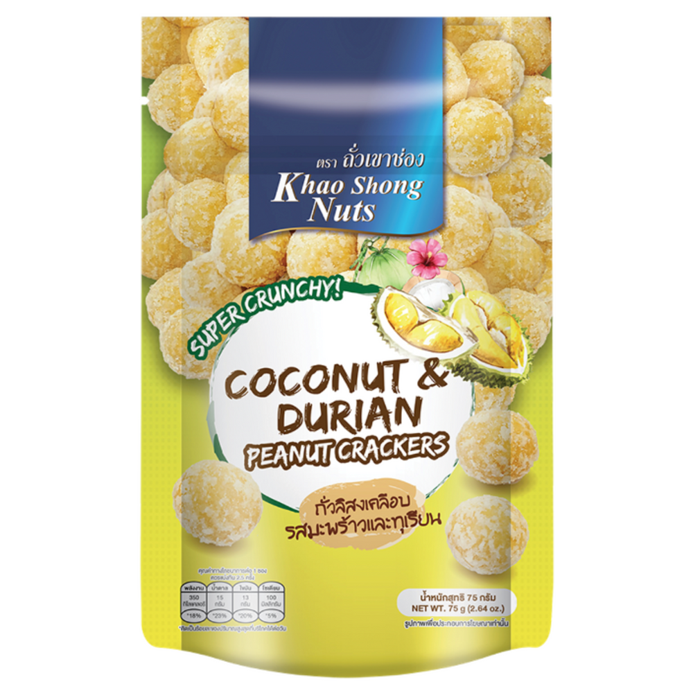 Žemės riešutų krekeriai su kokosais ir durijom KHAO SHONG, 75 g