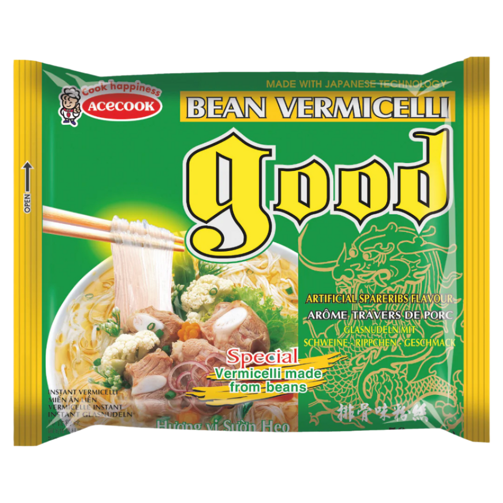 akaronai Pasimėgaukite paguodžiančiu dubenėliu „Good Sparerib Instant Vermicelli“ iš ACECOOK - greitas ir skanus 56 g patiekalas, pagamintas iš subtilių mung pupelių makaronų ir pikantiško kiaulienos nugarinės sultinio. Vietname pagamintoje ramen stiliaus sriuboje gausu džiovintų daržovių, įskaitant grybus, kopūstus ir žaliuosius svogūnus, ir prieskonių, kurie imituoja autentišką kiaulienos sriubą. Vos per tris minutes paruošta makaronų sriuba puikiai tinka sotiems pietums ar jaukiam vakaro užkandžiui. Harmoningai subalansuotos saldžios, sūrios ir mėsos natos - tai patogus sandėliuko elementas, kuris jūsų skonio receptorius nukels tiesiai į vietnamiečių namų virtuvę. Tiesiog užpilkite verdančiu vandeniu, užplikykite, išmaišykite ir mėgaukitės širdį šildančiais skoniais bet kada ir bet kur.