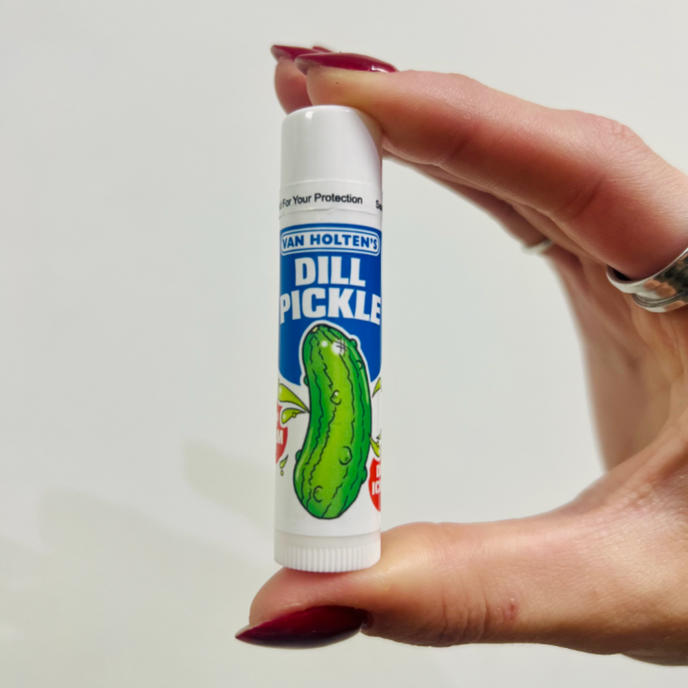 „Van Holten's Dill Pickle“ lūpų balzamas yra smagus, unikalus lūpų priežiūros būdas, suteikiantis lūpoms aštraus, sūraus klasikinių raugintų agurkų skonio. Sukurtas agurkų mėgėjams, šis lūpų balzamas yra drėkinantis ir visiškai natūralus. Išlaikykite lūpas švelnias ir sudrėkintas su drąsiu skoniu!