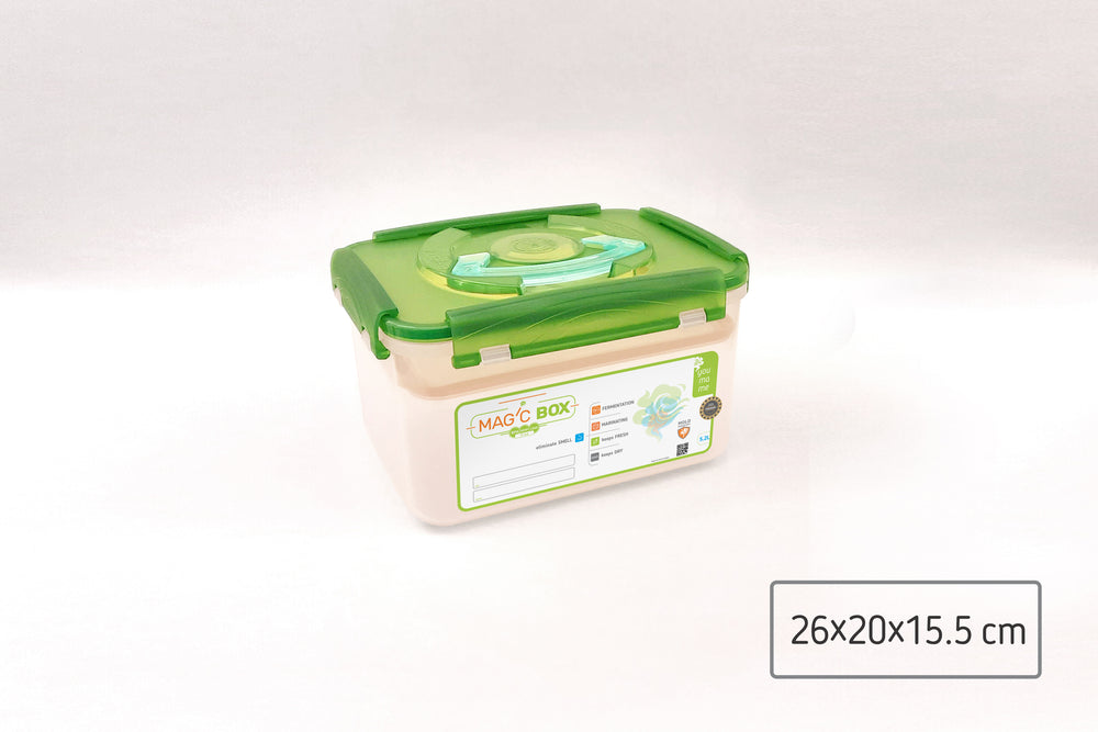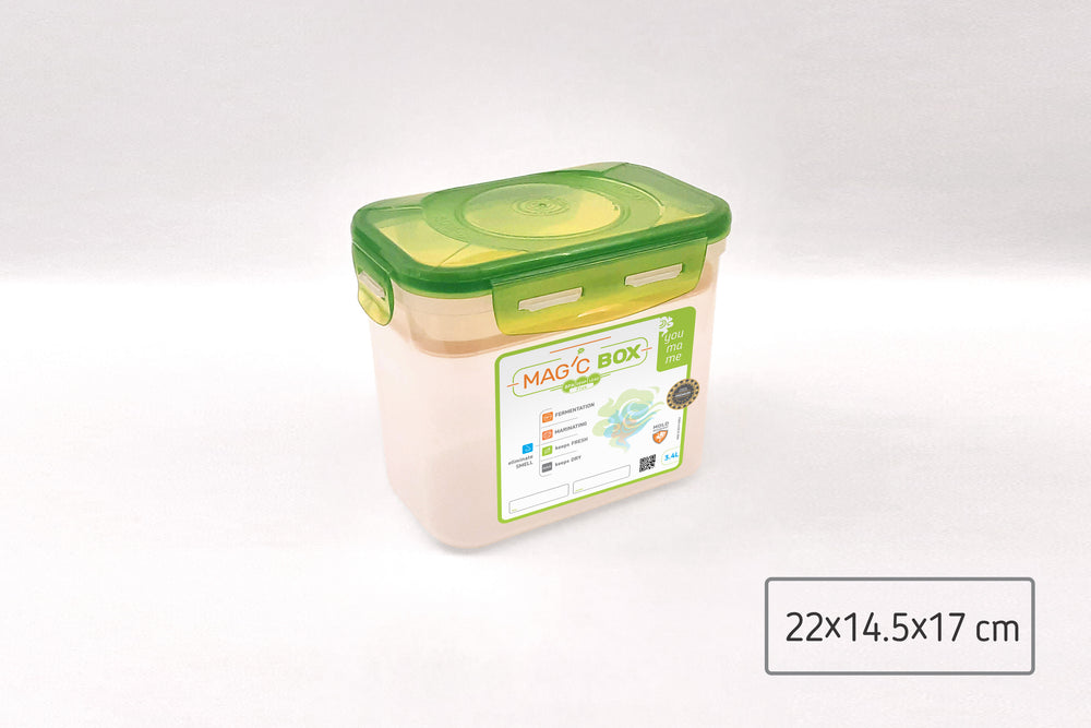 - MAGiC BOX vakuuminis ir sandarus laikymo konteineris turi reguliuojamą sandarinimo plokštę (5) konteinerio korpuse.