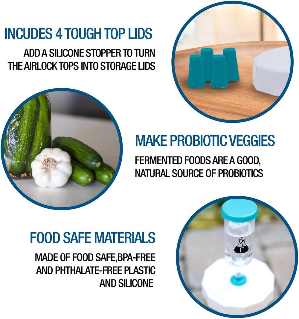 Fermentuokite daržoves ir dar daugiau - šią fermentacijos sistemą paprasta naudoti kimči, agurkams, raugintiems kopūstams ir kitiems maistingiems maisto produktams bei gėrimams fermentuoti stiklainiuose.
