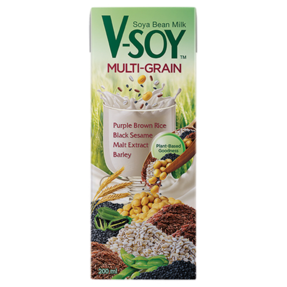 Tailando sojos pienas, praturtintas maistingais įvairiais grūdais, įskaitant violetinius ruduosius ryžius, miežius, juodąjį sezamą ir salyklo ekstraktą, sumaišytas su aukštos kokybės sveikomis sojos pupelėmis, suteikiančiomis kreminį, šiek tiek riešutinį aromatą ir natūraliai saldų, kvapnų skonį, praturtintą augaliniais baltymais ir būtinomis maistinėmis medžiagomis. Šis gėrimas be cholesterolio, tinkamas veganams, pasižymi sodriu, maloniu skoniu ir papildoma nauda sveikatai dėl jame esančių grūdų, todėl tai sveika pieno produktų alternatyva kasdienei mitybai, pusryčiams keliaujant arba lengvam maisto pakaitalui. Jis puikiai tinka sveikata besirūpinantiems vartotojams, ieškantiems patogaus, skanaus augalinio gėrimo. Įsigykite šią patogią 200 ml tetrapako pakuotę ir bet kada mėgaukitės išskirtine V-SOY kokybe!