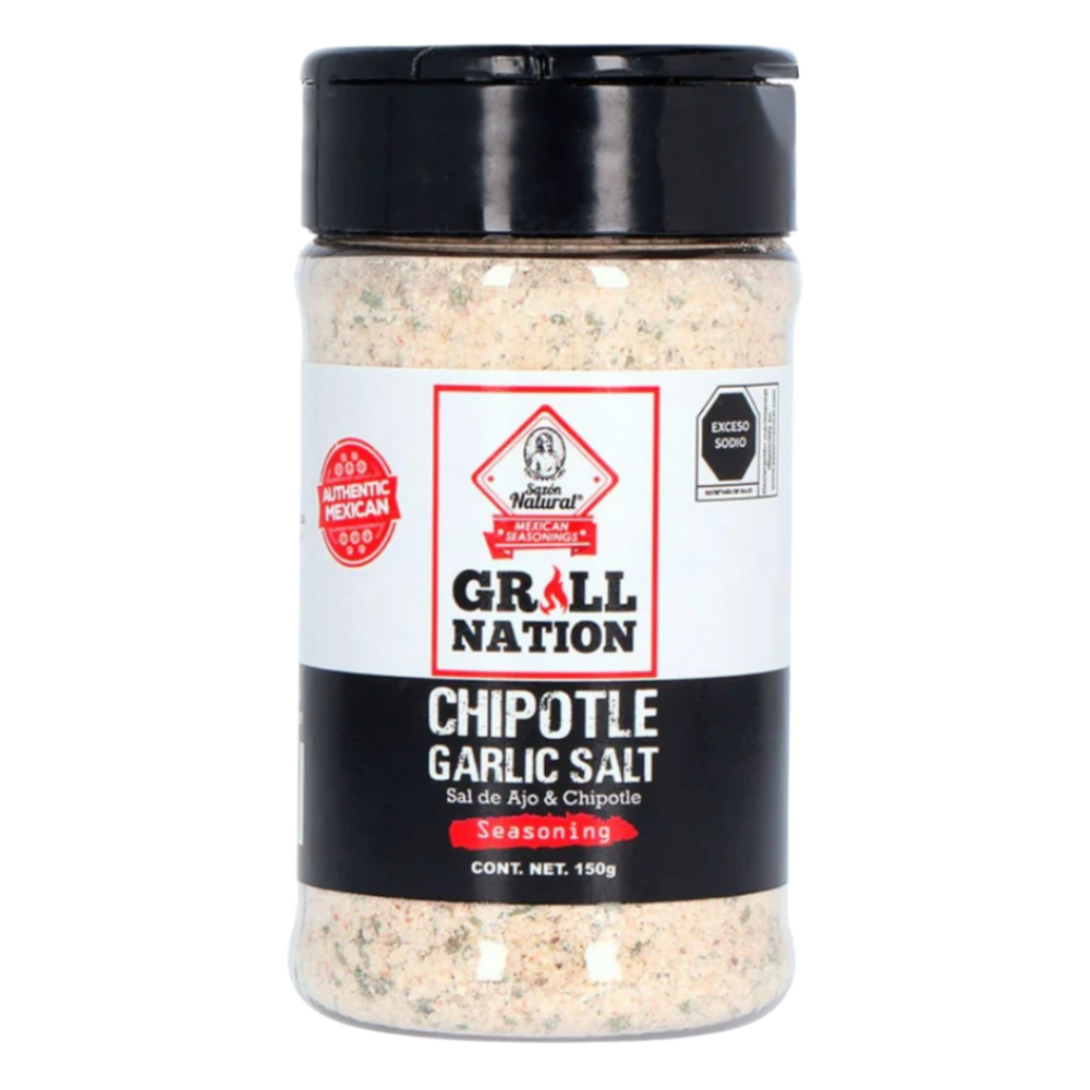 „Sazón Natural Chipotle“ česnakinė druska – tai kvapnus meksikietiškas prieskonis, kuriame dera čipotlės paprikų dūminis aitrumas ir sodrus česnako skonis. Šis 150 g mišinys sukurtas pagardinti įvairius patiekalus – nuo ​​keptos ant grotelių mėsos ir keptų daržovių iki sriubų ir troškinių, suteikiant jiems sodrumo ir prieskonių.