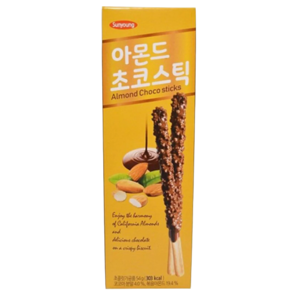 SUNYOUNG Almond Choco Sticks, a crunchy and nutty Korean snack perfect for any time of day. These biscuit sticks are coated in rich milk chocolate and generously sprinkled with crushed almonds, delivering a satisfying blend of creamy sweetness and toasted crunch. Great for snacking, sharing, or pairing with your favorite coffee or tea. Each stick offers a balanced bite of crispy biscuit, smooth chocolate, and roasted almond flavor. A must-try for fans of chocolate and nut combinations.