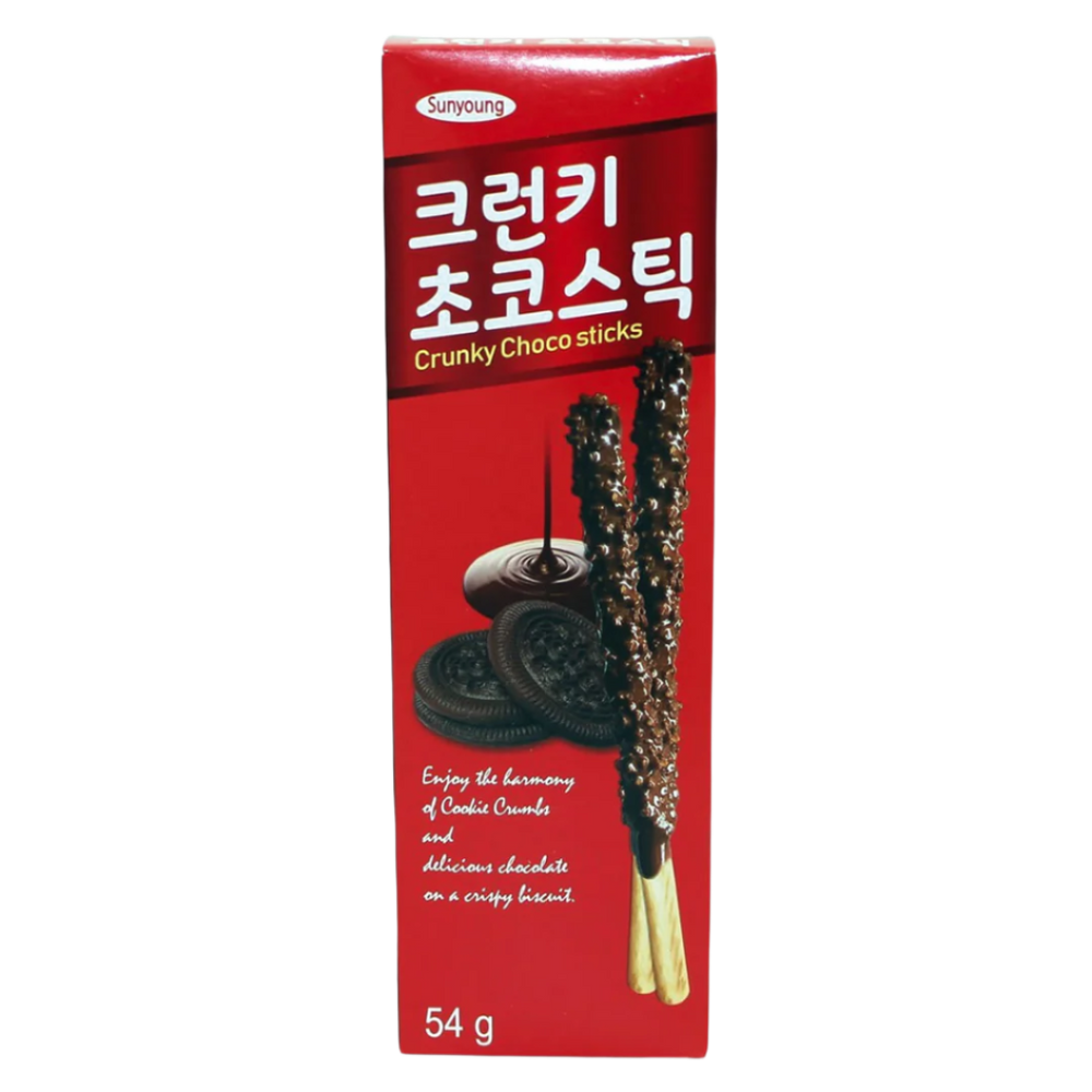 SUNYOUNG Crunky Choco Sticks - These Korean snack sticks feature a crunchy biscuit center coated in smooth, creamy milk chocolate. Light and snackable, they’re perfect for school lunches, office breaks, or a quick sweet pick-me-up anytime. Their crisp texture and rich chocolate flavor make them a favorite for both kids and adults. Conveniently packed and ready to enjoy on the go or at home.